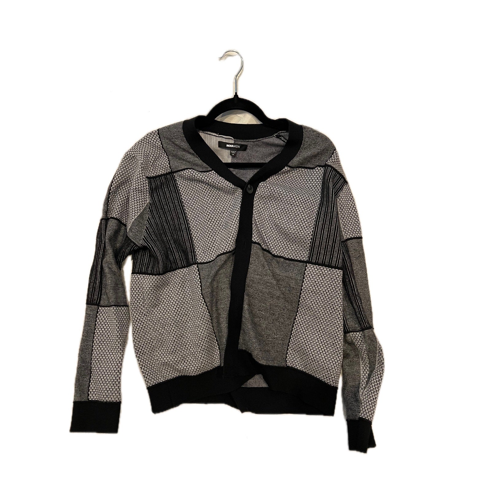 Novamen Black and White Cardigan Sweater Mens Med