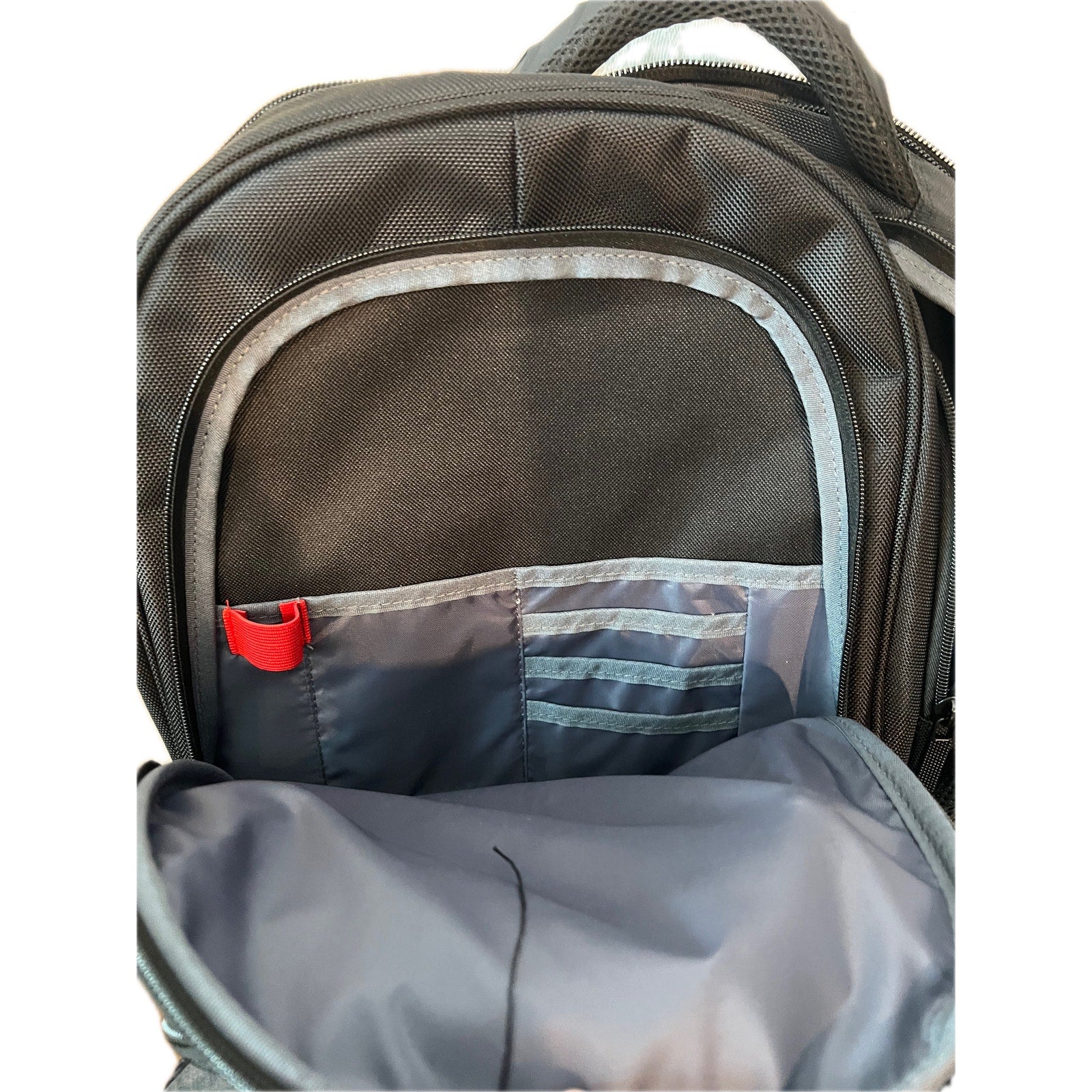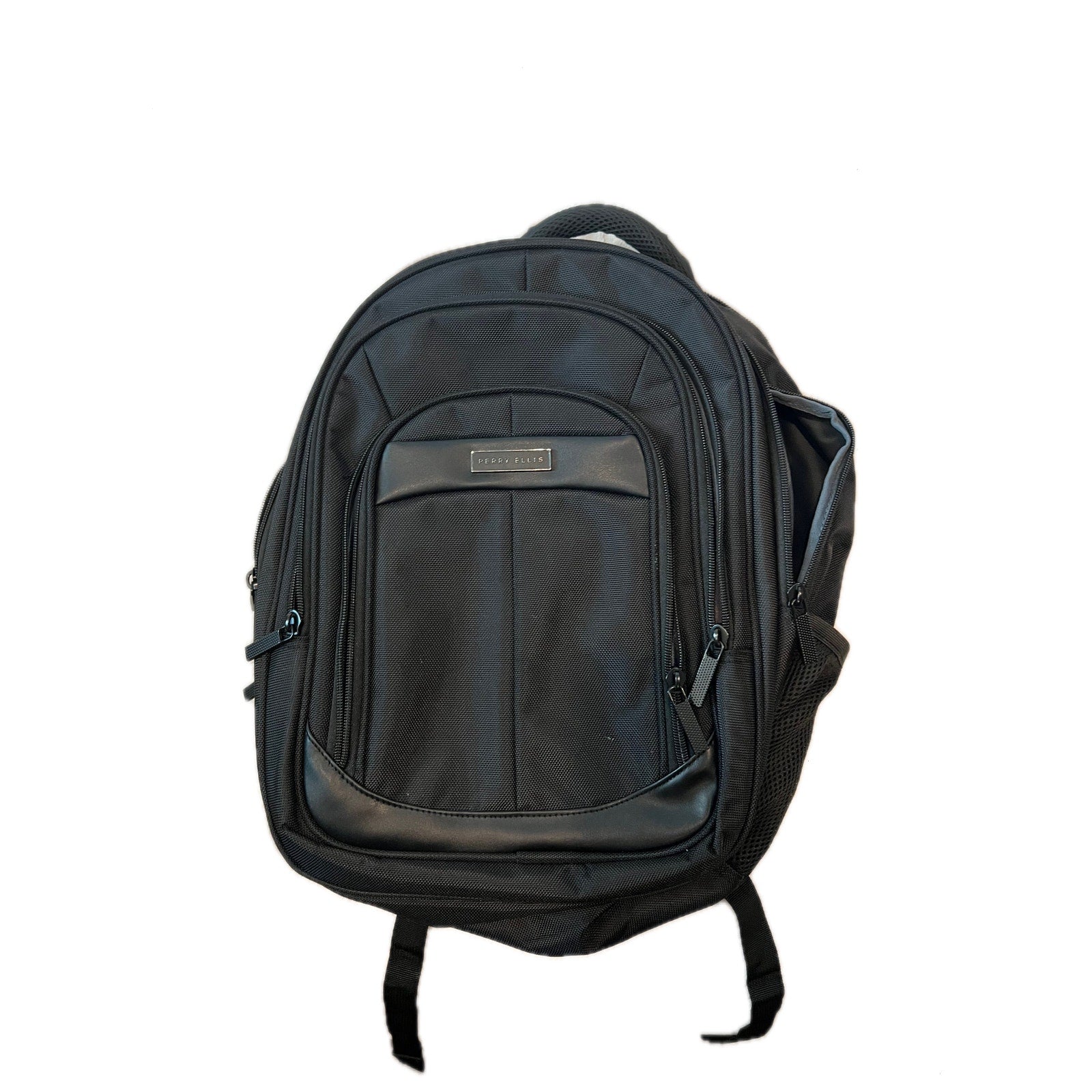 Perry Ellis Portfolio Backpack, Black with three large compartments. padded computer sleeve
